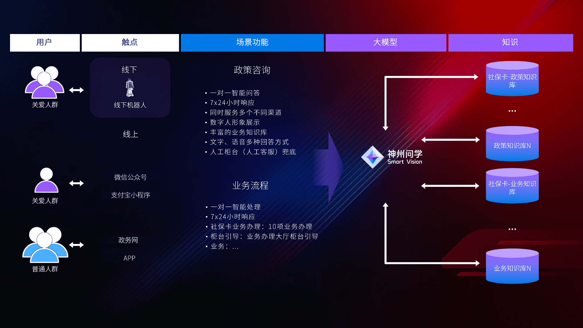 在服务大厅部署客服机器人,,在线上应用和小程序配置客服数字人,,,724小时为群众解答常规问题,,客服机器人无法处理的,,,,转现场人工处理。。。。
